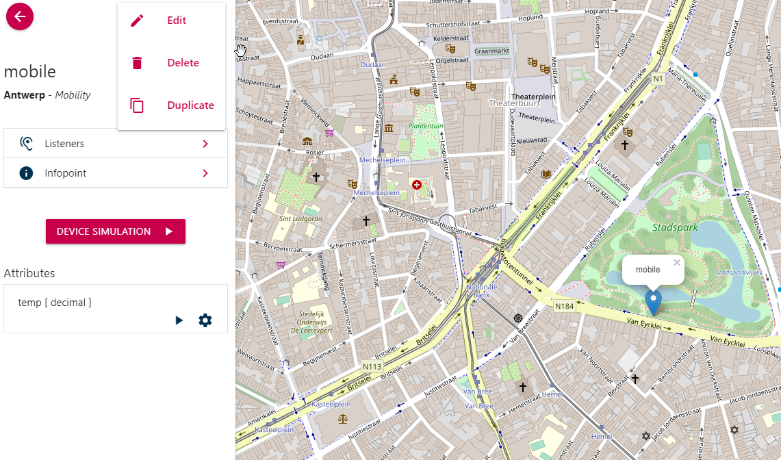 Some details about the device are shown (location, attribute, other buttons, etc)