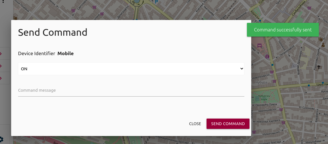 There is also the possibility to send command to devices that accept them (e.g. PULL device with actuators). To do that the user needs to click on array in section send command.