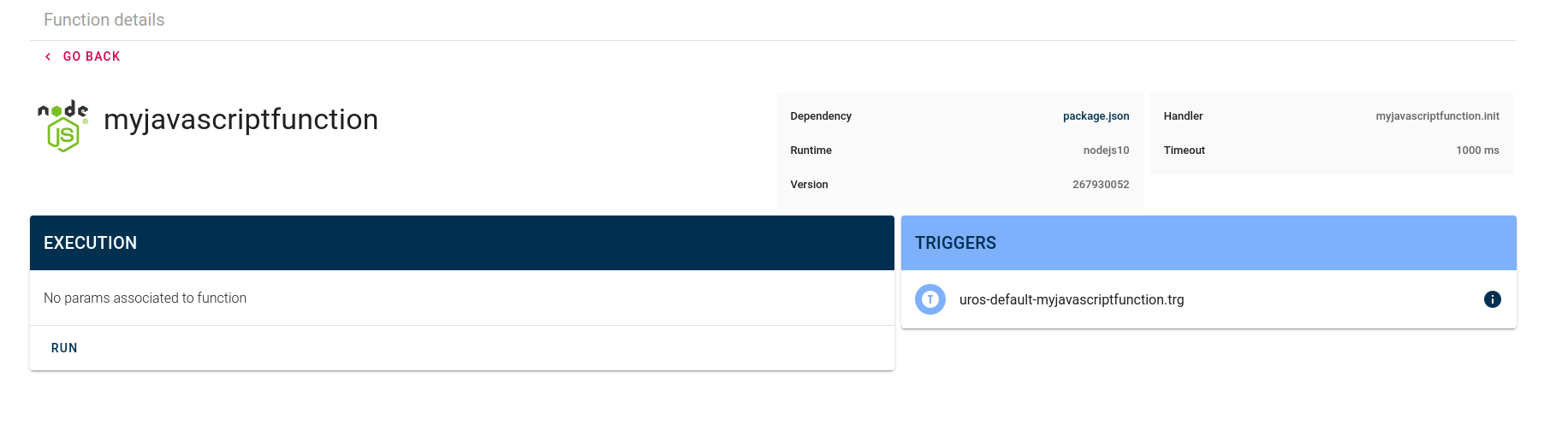 On Function details page you can see all details of deployed function.