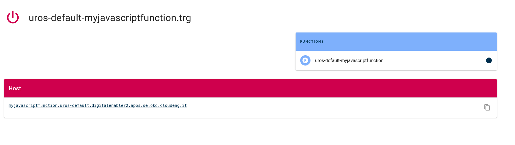 - Details for redirection to function details page.